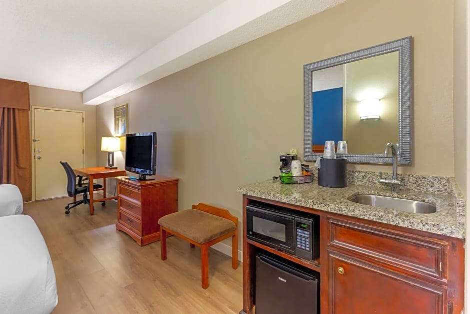Convenient amenities include free on-site parking, free WiFi, and a seasonal outdoor pool with a sun deck. Additional comforts feature a fitness center, air conditioning, non-smoking rooms, an elevator, free toiletries, and a 24-hour front desk with a business center. Pets are welcome with extra charges, and payments are cash only.
